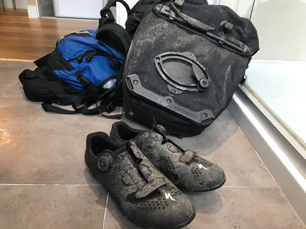 When I got to my hotel in Sarlat (a Best Western, of all places, which is high living for me), I was a wet and muddy mess. Not just me but my bike and my panniers and shoes and, well, everything.