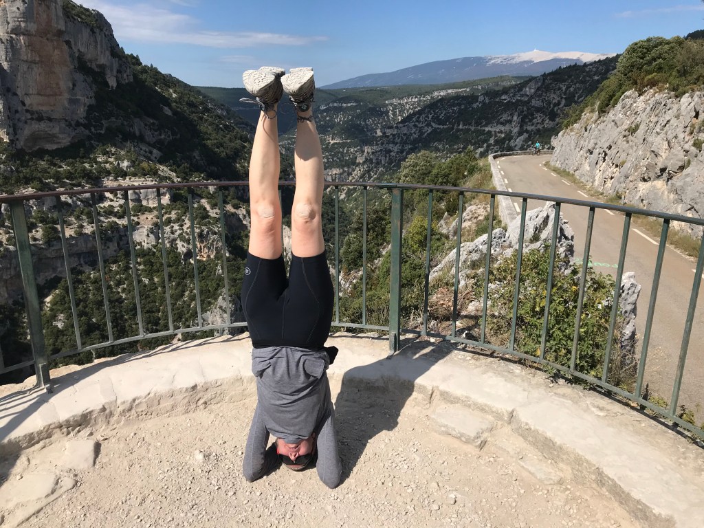 On another Nesque loop, Susan and I stopped – of course – at the viewing station. And she did one of her “famous” headstands – and I got this shot.