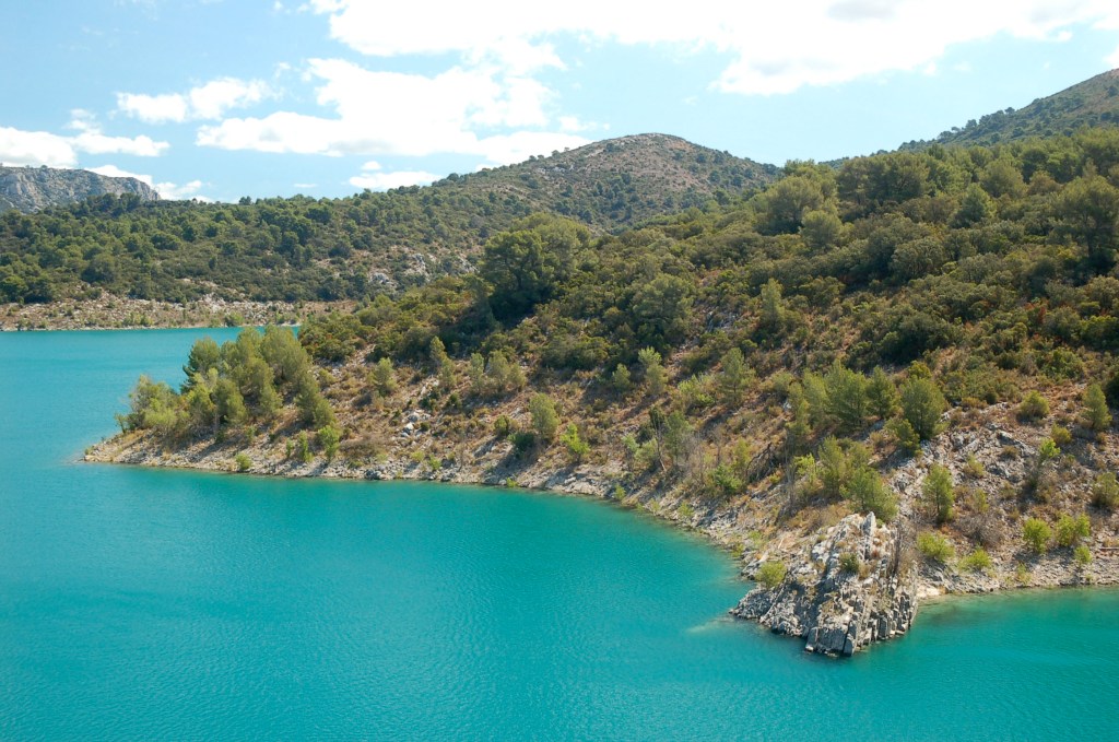 The water in the reservoir is amazingly blue. There are plenty of places to stop, take in the view … and finish off the snacks I procured in Pourrieres. You could and should spend a half an hour or more here.