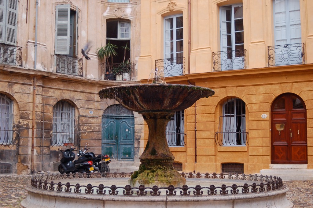 Then, an 7 easy kilometers back into Aix, one of my favorite towns/cities. Yes, it’s a bit touristy, but has managed to retain its charm. It’s a city full of fountains, as well as hundreds of cafes and restaurants. Head over to Les Deux Garcons, where Cezanne and Zola would often meet to have a drink and discuss the important issues of the day. In my mind, they had a pastis, so that’s what I always order. Susan gets a kir. Others who have frequented Les Deux Garcons over the years include: Jean-Paul Sartre (I’d sure like to hear his point of view after a few drinks!), Picasso, Hugh Grant and George Clooney.