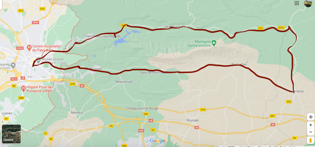 Here’s the Ste-Victoire loop, it’s about a 35-mile ride …