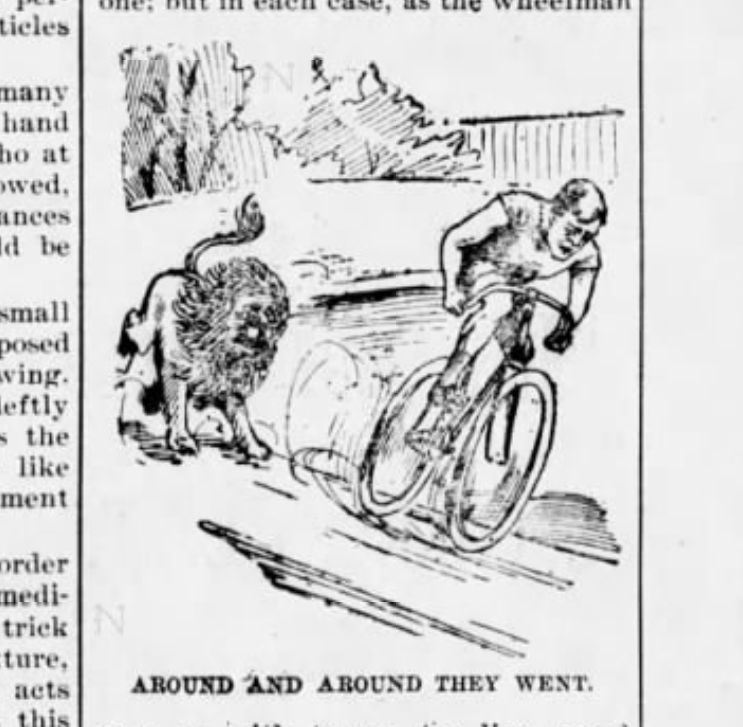 Here’s the link to another of my on-going series of fascinating, bicycle-history stories. Sign up for email alerts so you won’t miss any. And remember: Never volunteer to help catch a lion!