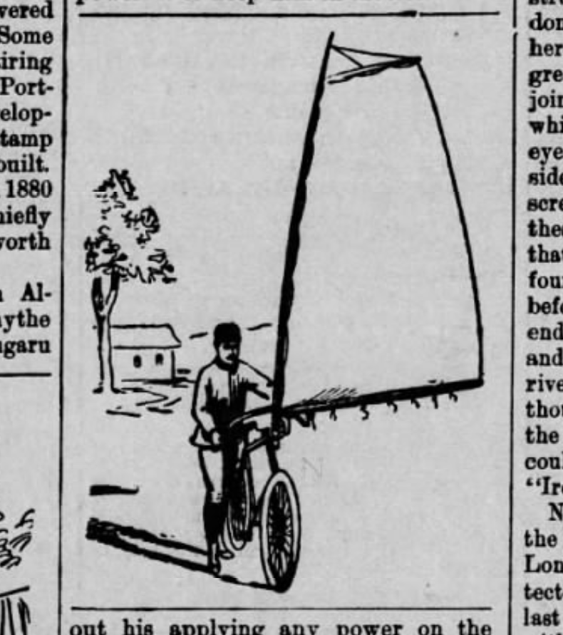 It worked. And sort of caught on, as others tried to fashion their own version of White sailing bicycle. Here’s some advice for from the inventor, for anyone who wants to give it a blow …