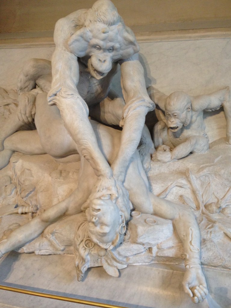This one is in the entrance lobby of the Museum National d’Histoire Naturelle in the Jardin des Plantes in Paris. The museum is filled with the bones of hundreds of animals that were presumably killed by humans, so this sculpture somehow seems like payback. I had Planet of the Apes nightmares for a week.
