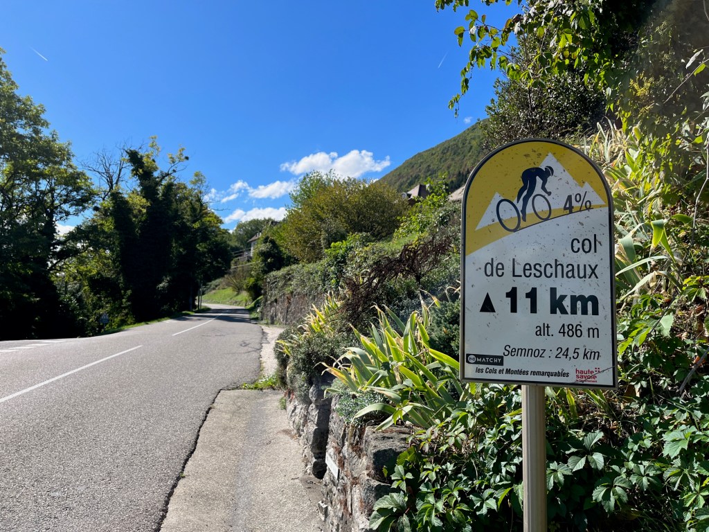 This climb is broken into two sections. The first begins in the town of Servier, by the church and the D1508, and you ride 12 kilometers to the town of Leschaux. The road goes along the ridge of the mountain with a very gradual incline. It was all 3- and 4-percent grades. That’s easy!
