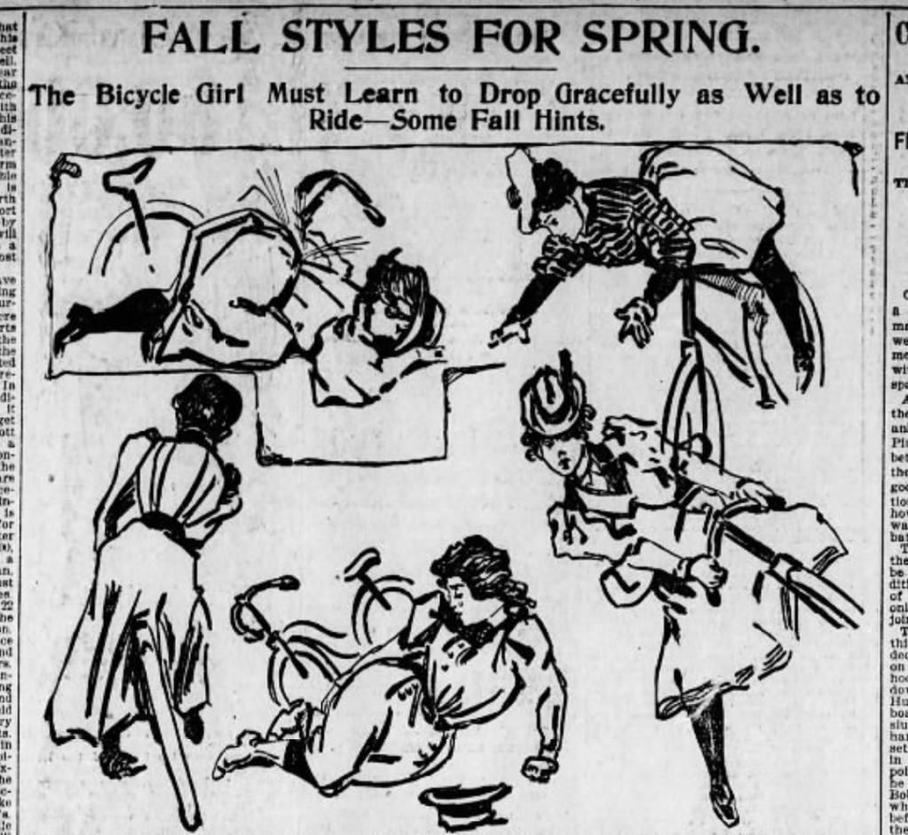The most popular topic for bicycle humor was, far and away, accidents. I guess a bike-crash joke can be funny … if you’re not involved.
