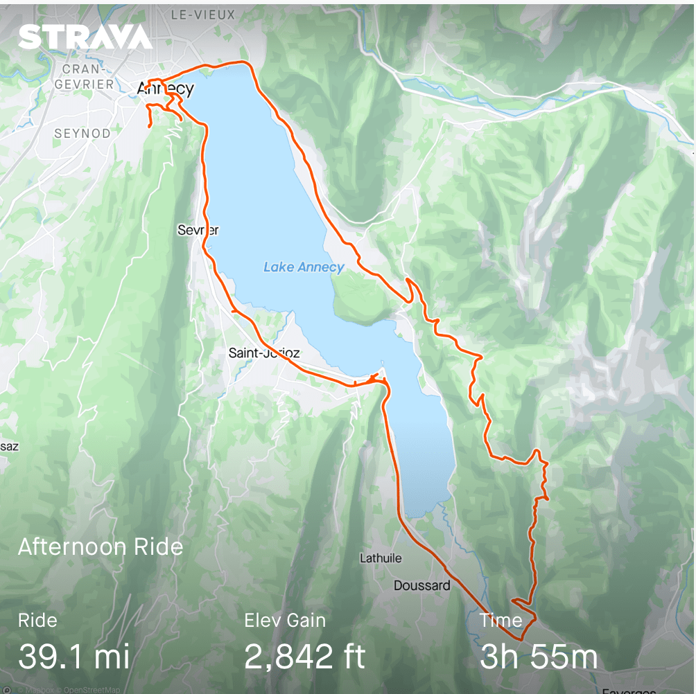 This morning, after it finally stopped raining, I walked over to the bike shop and got my rental. A nice red Lapierre. And immediately felt a little better. Off I went, from the center of Annecy, trying to get to the lake. I was gonna do a lap around the lake and add in a climb up the Col de Forclaz. The road I thought would take me to the lake was a one-way the opposite way so I improvised and somehow I managed to climb up and out of town in the wrong direction. Again … I blame the jet lag. And my lousy sense of direction.