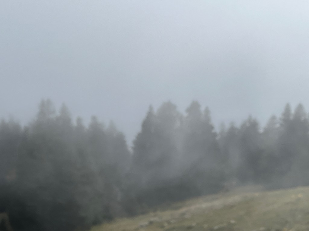 Remember how I said the view from the top makes the climb worthwhile? Well, not today, it was overcast and cloudy at the summit. Here was the view …
