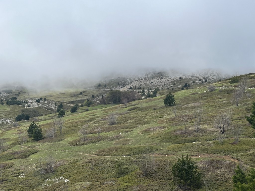 It’s possible to go down the other side and loop back around to Sisteron (which is what the Germans did) but I decided to go back down the way I came up. And … it was as cold as I thought it would be. A few degrees colder, or if it had rained, which seemed possible, hypothermia was a possibility. But I made it and saw at least another 20 cyclists on their way up the Signal.