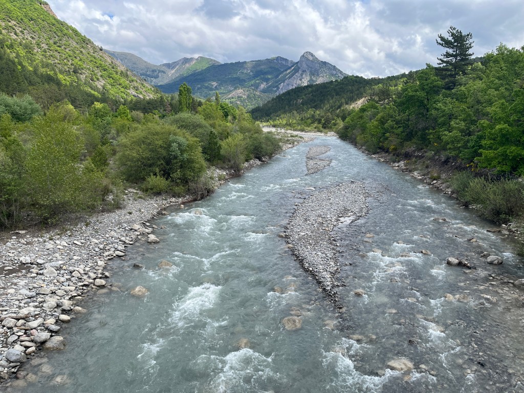 This was one of the most beautiful rides I’ve ever done. The first part was on a little road that ran parallel to the Sasse River, which runs into the Durance. And because I was riding “upstream” it was a steady, but very manageable uphill the whole way (maybe a 2-percent average). And, on both sides of me, over millions of years, the waters from the Sasse had carved our cliffs and mountains. And there were little stone villages on top of several of the hills.